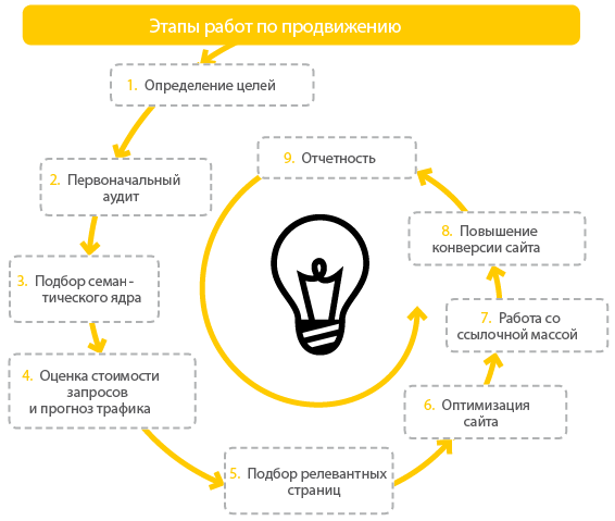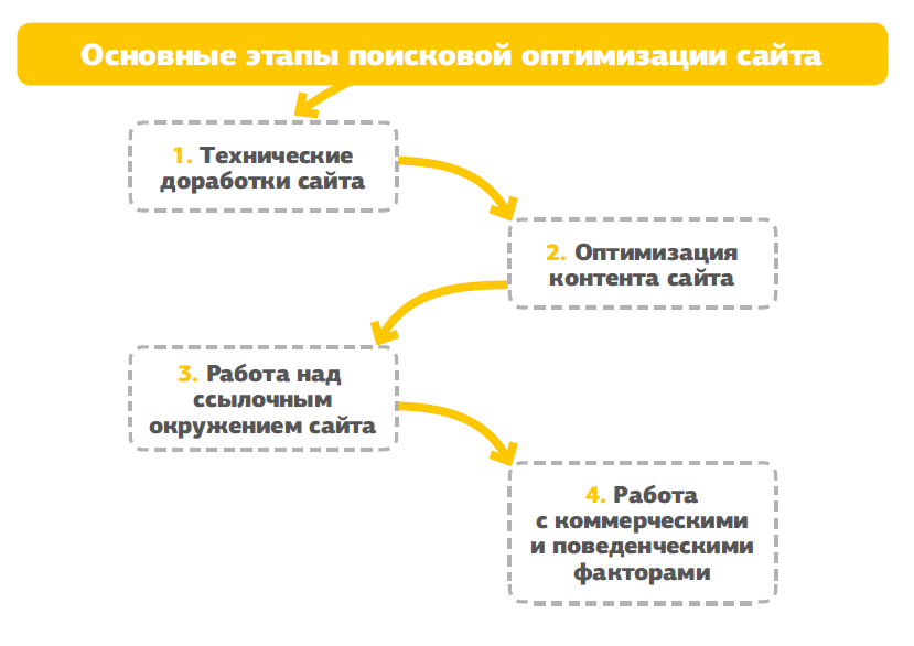 блоге. Однако тема актуальная и сегодня, поэтому хотим поделиться секретами продвижения сайтов в поисковых системах и напомнить о его основных этапах. Так владельцы web–ресурсов будут понимать, что именно получают при заказе этой услуги и какое значение для поисковых систем имеют структура, текстовое наполнение и даже дизайн сайта.