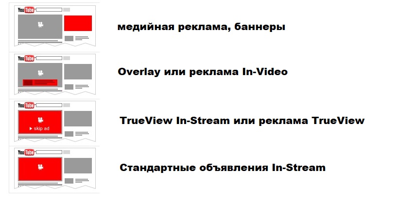 Форматы видеорекламы видеохостинга классифицируют по трем категориям: