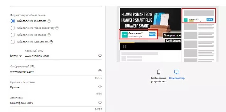 Размещение видеоконтента для рекламы происходит на YouTube, но появление видеообъявлений доступно на сайтах и в приложениях, которые являются партнерскими видеоресурсами Google.