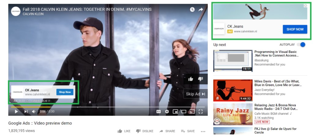 • в разделе аналогичных видео, возле тематического контента на YouTube или  контекстно-медийной сети Google.