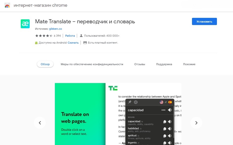 На что способно расширение Mate Translate