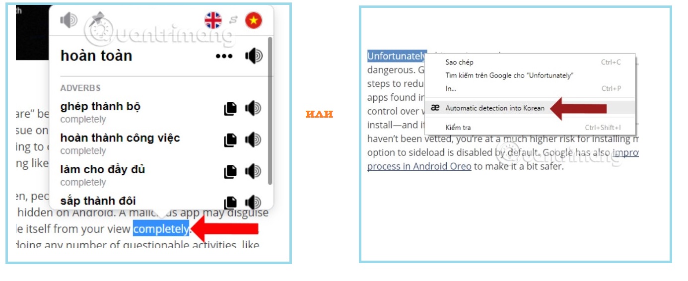 Как и в Google Translate, перевод доступен несколькими способами.
