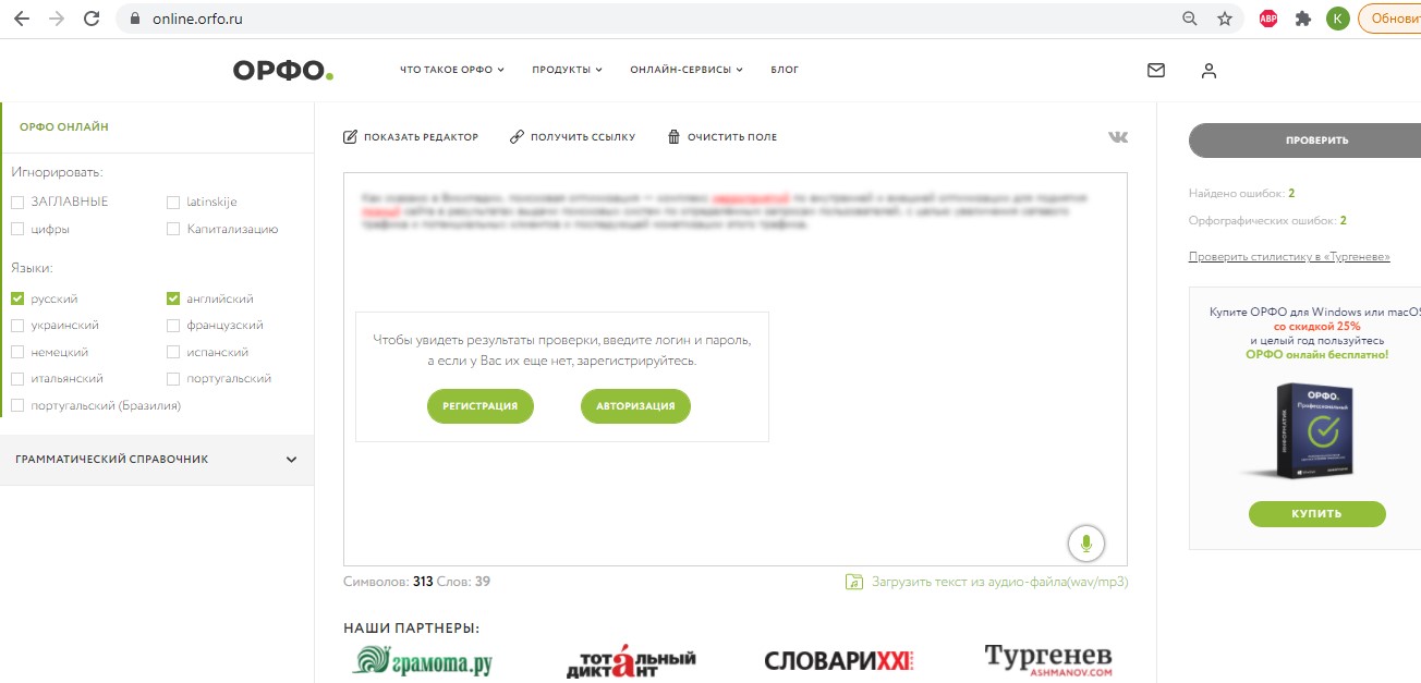 С помощью программы, которую легко скачать на ПК или использовать онлайн, возможно проверить текст на наличие ошибок и опечаток. Однако, сервис доступен только для авторизированных пользователей.